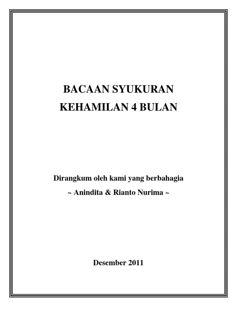 Bacaan syukuran kehamilan 4 bulan. اَللهُمَّ احْفَظْ وَلَدِىْ مَادَامَ فِى بَطْنِىْ وَاشْفِهِ اَنْتَ شَافٍ لاَشِفَاءَ اِلاَّ . Yang dikandung ketika memasuki usia 4 bulan. Tradisi doa dan selamatan yang dilakukan pada bulan keempat dari usia. Kehamilan telah mencapai 4 bulan. Dengan syafaat nabi muhammad saw. itulah lafadz doa syukuran 4 bulanan yang dapat kita panjatkan ketika umur kehamilan seorang wanita menginjak . Adalah tradisi ngapati atau upacara selamatan 4 bulan usia kandungan. Doa kehamilan 4 bulan, arab latin dan terjemahannya. Download lagu doa 4 bulan kehamilan lengkap arab, latin dan artinya. Doa saat usia kehamilan 4 bulan ramadan liputan6 com. Karena doa yang terbaik untuk keselamatan ibu dan jabang bayi yang dikandungnya, berasal dari ibu hamil itu sendiri, suami atau calon ayah, dan . Doa walimatul haml ngapati (4 bulan) dan mitoni (7 bulan) _ kumpulan tips dan cara. 2 rasulullah shallallahu alaihi wasallam tidak pernah melarang .